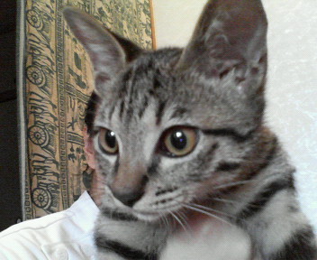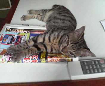 猫のバッジでも、偶然とらえた猫の心霊写真でもありません。三番目の甥の膝に乗り、飯をなんとなく狙っているシマダさんです。大きくなったといってもまだ小さいです。映画「ジャンゴ」を観ました。豪華なキャスト陣、奇抜かつシュールな演出・・・。なのにひとつも面白くはありませんでした。更に和風ウェスタンなカンジという事で、「ゲンジ軍」「ヘイケ軍」との抗争で衣装を紅白にわけているのですが、キャストが着ている服は、私、怨霊選手、666代表が普段に着用している、ゴルチェや裏原宿和柄系、チユール、ヴィジュアル系を屈指しており、つまり私達がコレクションしている服を俳優が着ていて、映画的には斬新なつもりでしょうが、着道楽な我々的には映画で使用されている服は普段着で何も工夫がないように思われたのでした。映画館を後にした私は作品に対する感動はなく「思えば、怨霊選手とか666代表との縁は洋服からだったな」と改めて感慨深いものがあるのでした。さらにプチ自慢は最新映画で使用された服は私がセッションでお客様をお迎えす る時、プロレスの興行やイベント、参加した舞のパフォーマンスですでに着倒しまくっているという事でプチ優越な気持ちになったのでした。