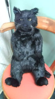 「評判の悪い黒牡丹」。先日、買った奇天烈な猫のぬいぐるみの黒牡丹。落合界隈の顔見知りの住人の方々、商売をされている方、及びお客様にドン引きされています。休憩中にドアが開き御近所の人が「先生!、いったいこれは何ですか?、熊?犬?あっ?こりゃ猫だっ、それにしても不細工ですねぇ〜なんだってこんなものを飾っているんですか〜?」とか言われ、お客様には「キャー!このぬいぐるみ呼吸してますっヒゲも動いてますっ」などと取り乱され、そのカラクリはエアコンの斜め下の椅子に座らしてあるので、その風がぬいぐるみに当たり、フェイクファーの毛並みと、ナイロンのヒゲにソヨソヨとなびくのでした。が不細工の怖いの言う皆様ですが、黒牡丹を抱いては頭を撫でたり、尻尾を引っ張ったりして「アハハ、フフフ」などと和んでいるようです。で、私はセッションルームに入りっぱなしなのでぬいぐるみを見る機会は休憩時だけなのですが、お客様をお見送りした後に振り返ると存在感満載の黒牡丹を見る度に「ハッ!いつの間にか野良猫がいる!」と驚いている始 末です。ゆくゆく、あの進出期没な店に、変なぬいぐるみがおいてあると噂を呼んでくれたら、面白いモノだと思いました。