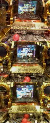 最近ハマっているメダルゲーム。 なぁに、子供のお遊び…と思われる方もいらっしゃるかも知れませんが、これが何ともマシンのロジックと物理学的解析を真剣に行って勝利しなくてはいけないという、非常にオトナの遊びなんで御座いますよ。 更に言えば、パチスロの様に、勝ったからと言っても換金出来る訳じゃなし。 正に、「勝つ」事だけに意義と興奮を見出せなくてはならない、非常にストイックな遊びなのです。 コンピュータゲームに飽きた方、メダルという気紛れな生き物の、その1投1投に感情を込めてみる…そんな時間は如何なものでしょう? さて、前置きが長くなりましたが、要は、暇(なんて無いのですが…)潰しと時間調整で、最近はゲーセンに釘付けって事です。 で、マジに台の状況を読む&運任せの要素にマジで念を込める事で、ほぼ毎度、なかなか出なくて出る前にメダルが尽きてしまう(であろう)「大当たり」を何度も出し、キープのメダルは増えていく一方。 初回以来、一銭も現金を使わずに遊んでしまって、お店には申し訳ないです。 …と言いつつ、まだまだ通わせて頂きますよー! 写真は昨日、数時間で台を転々と有利な処に換えながら3回の大当たり。 総計3500枚の払い出し。 周りは白い目。